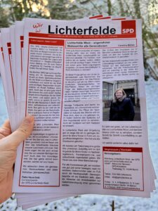 Inhalte der Ausgabe sind u.a. ein Beitrag unserer Stadträtin Carolina Böhm zu „Lichterfelde für alle Generationen“ oder Artikel zur Situation am Hindenburgdamm und der Hauptkadettenanstalt…